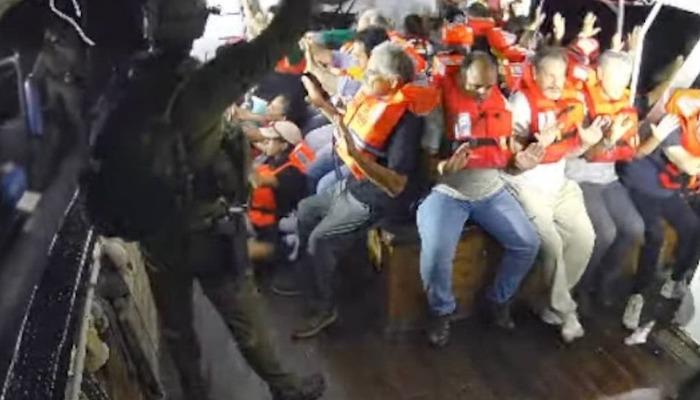 İsrail Dışişleri Bakanlığı tarafından yayınlanan bir beyanda, İsrail Handala Donanması “İsrail”, yasadışı girişin karasal sulara girmesini engelledi, geminin kıyıya taşındığını söyleyerek.