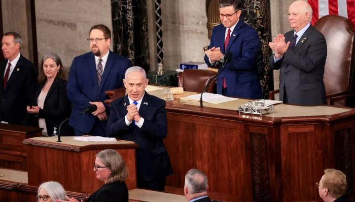 İsrail Başbakanı Binyamin Netanyahu Washington'da ABD Kongresi'ne hitap etti. Netanyahu kongre senatörleri tarafından alkışlandı. Aylardır senatörler tarafından Gazze'de yaşanan katliamların hiçbir suçu yokmuşçasına alkışlanan Netanyahu, ABD'ye başvurmaktan çekinmedi. “ABD'ye şu çağrıyı yapıyorum: Bize çabuk araçları verin, biz de çabuk bitirelim.” ABD'ye seslenen Netanyahu, “İsrail, Hamas'ın askeri yeteneklerini yok edene kadar devam edecek. Bu tam bir zafer demektir. Daha azını kabul etmeyeceğiz.” ilan etti.