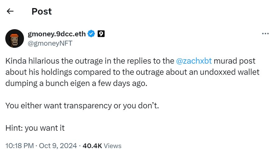 Zincir üstü araştırmacı, 8 Ekim tarihli bir X gönderisinde Mahmudov'u çeşitli cüzdanlara bağladı. ZachXBT, cüzdanların ortak bir kaynak tarafından finanse edildiğini ve varlıkların, bireyin paylaştığı varlıklara benzer olduğunu söyledi.